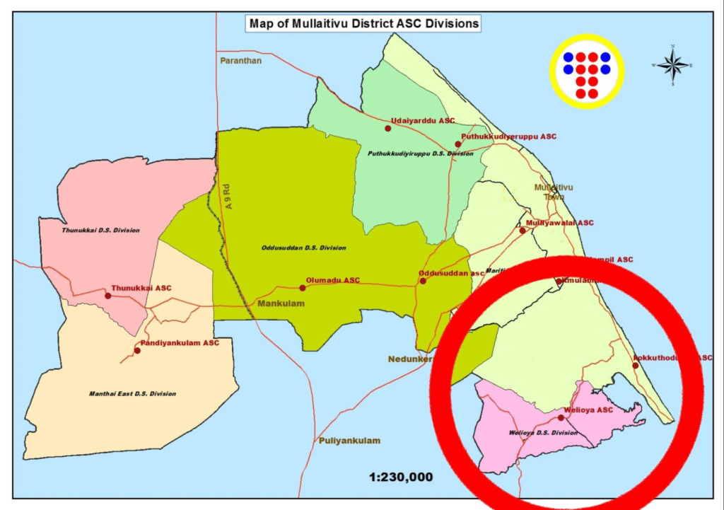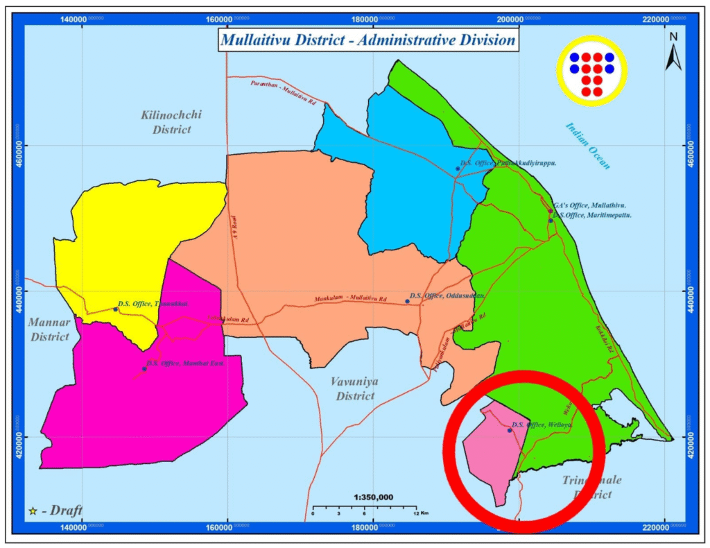 தற்போது, வெலியோயா பிரதேச செயலாளர் பிரிவு (DS Division) – இது வடக்கு மற்றும் கிழக்குத் தமிழர் மாகாணங்களை இணைக்கும் ஒரு முக்கிய நிலத்தொடர்பாக இருந்தது – தற்போது விரிவுபடுத்தப்பட்டுள்ளது.